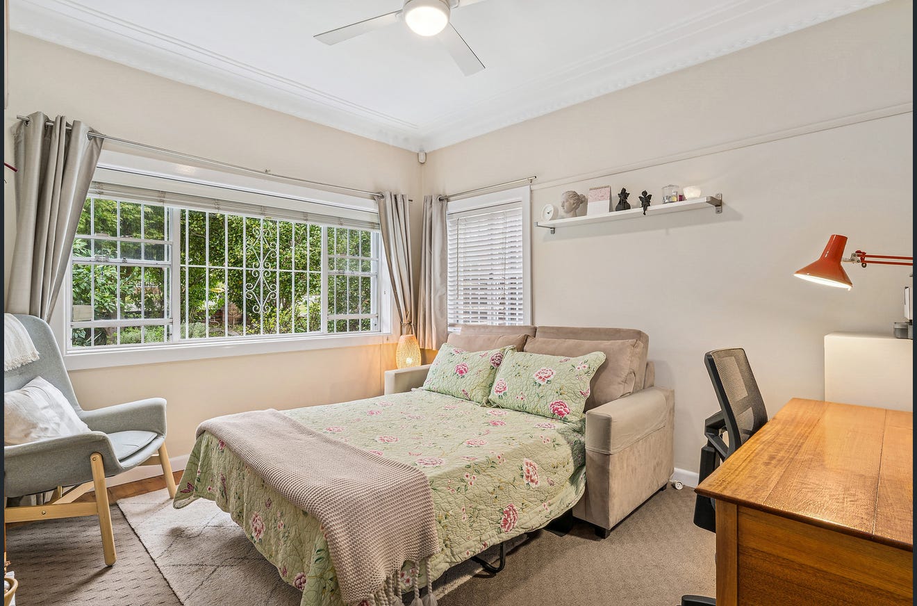 Offered for the first time in over two decades, this beautifully maintained full brick family home blends timeless character with modern comfort. Showcasing polished timber floors, high ceilings, and charming cornices, the interiors feel warm and inviting throughout. The open-plan living and dining areas flow seamlessly to a wide covered deck, perfect for relaxed entertaining against a lush garden backdrop. Set on a private block with a mango tree and herb garden, this home also features a modern kitchen with gas cooking, Bosch appliances, and solar-powered amenities. Conveniently located near Earlwood Public School, village shops, parks, and transport.